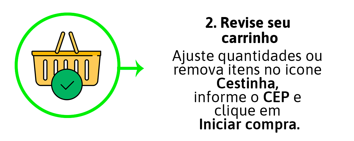 Você pode continuar adicionar produtos ao carrinho ou clicar em ""Iniciar compra""